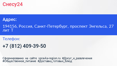 Снесу24 по адресу 194156, Россия, Санкт-Петербург, проспект Энгельса, 27 лит Т в дальнейшем Организация, размещена в следующих категориях: