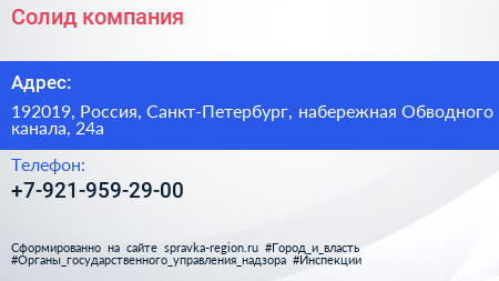 Солид, компания по адресу 192019, Россия, Санкт-Петербург, набережная Обводного канала, 24а в дальнейшем Организация, размещена в следующих категориях:
