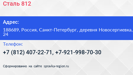 Сталь 812 по адресу 188689, Россия, Санкт-Петербург, деревня Новосергиевка, 24 в дальнейшем Организация, размещена в следующих категориях: