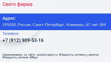 Свего, фирма по адресу 195030, Россия, Санкт-Петербург, Коммуны, 67 лит БМ в дальнейшем Организация, размещена в следующих категориях: