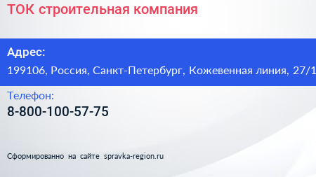 ТОК, строительная компания по адресу 199106, Россия, Санкт-Петербург, Кожевенная линия, 27/1 в дальнейшем Организация, размещена в следующих категориях: