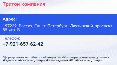 Тритон, компания по адресу 197229, Россия, Санкт-Петербург, Лахтинский проспект, 85 лит В в дальнейшем Организация, размещена в следующих категориях: