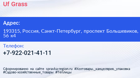 Uf Grass по адресу 193315, Россия, Санкт-Петербург, проспект Большевиков, 56 к4 в дальнейшем Организация, размещена в следующих категориях: