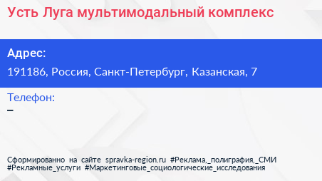 Усть-Луга, мультимодальный комплекс по адресу 191186, Россия, Санкт-Петербург, Казанская, 7 в дальнейшем Организация, размещена в следующих категориях: