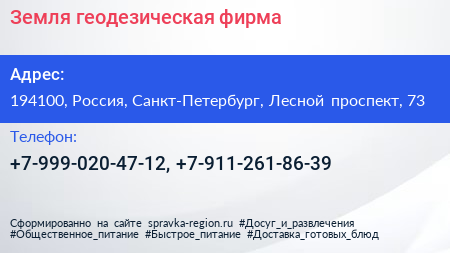 Земля, геодезическая фирма по адресу 194100, Россия, Санкт-Петербург, Лесной проспект, 73 в дальнейшем Организация, размещена в следующих категориях: