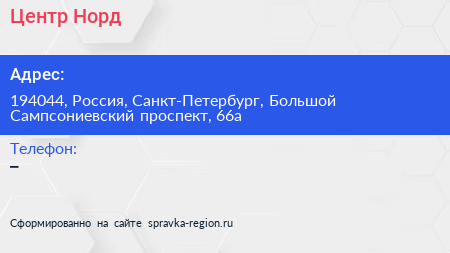 Центр Норд по адресу 194044, Россия, Санкт-Петербург, Большой Сампсониевский проспект, 66а в дальнейшем Организация, размещена в следующих категориях:
