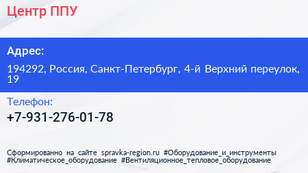 Центр ППУ по адресу 194292, Россия, Санкт-Петербург, 4-й Верхний переулок, 19 в дальнейшем Организация, размещена в следующих категориях: