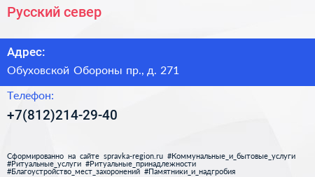 Русский север по адресу Обуховской Обороны пр., д. 271 в дальнейшем Организация, размещена в следующих категориях: