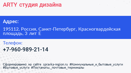 ARTY, студия дизайна по адресу 195112, Россия, Санкт-Петербург, Красногвардейская площадь, 3 лит Е в дальнейшем Организация, размещена в следующих категориях: