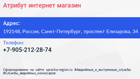 Атрибут, интернет-магазин по адресу 192148, Россия, Санкт-Петербург, проспект Елизарова, 34 в дальнейшем Организация, размещена в следующих категориях: