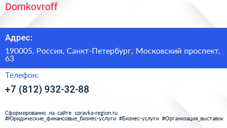 Domkovroff по адресу 190005, Россия, Санкт-Петербург, Московский проспект, 63 в дальнейшем Организация, размещена в следующих категориях: