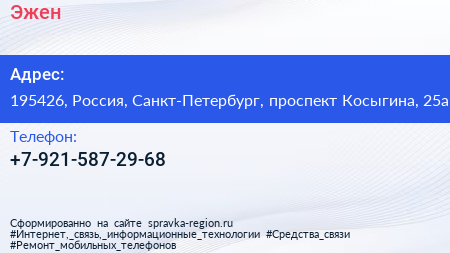 Эжен по адресу 195426, Россия, Санкт-Петербург, проспект Косыгина, 25а в дальнейшем Организация, размещена в следующих категориях: