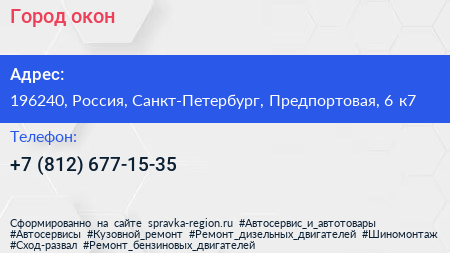Город окон по адресу 196240, Россия, Санкт-Петербург, Предпортовая, 6 к7 в дальнейшем Организация, размещена в следующих категориях: