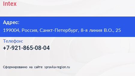 Intex по адресу 199004, Россия, Санкт-Петербург, 8-я линия В.О., 25 в дальнейшем Организация, размещена в следующих категориях: