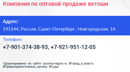Компания по оптовой продаже ветоши по адресу 191144, Россия, Санкт-Петербург, Новгородская, 14 в дальнейшем Организация, размещена в следующих категориях: