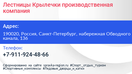Лестницы-Крылечки, производственная компания по адресу 190020, Россия, Санкт-Петербург, набережная Обводного канала, 136 в дальнейшем Организация, размещена в следующих категориях: