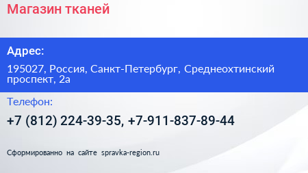 Магазин тканей по адресу 195027, Россия, Санкт-Петербург, Среднеохтинский проспект, 2а в дальнейшем Организация, размещена в следующих категориях: