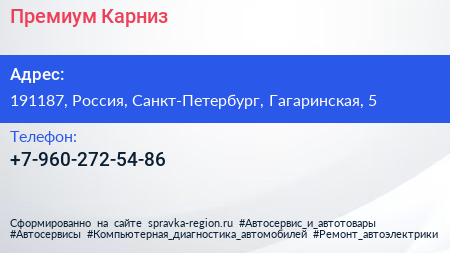 Премиум Карниз по адресу 191187, Россия, Санкт-Петербург, Гагаринская, 5 в дальнейшем Организация, размещена в следующих категориях: