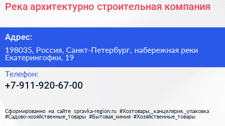 Река, архитектурно-строительная компания по адресу 198035, Россия, Санкт-Петербург, набережная реки Екатерингофки, 19 в дальнейшем Организация, размещена в следующих категориях:
