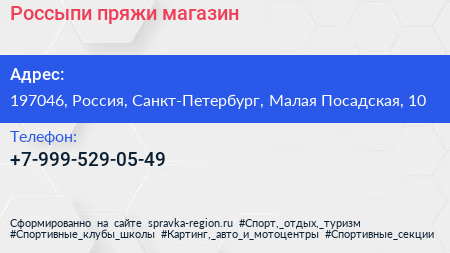 Россыпи пряжи, магазин по адресу 197046, Россия, Санкт-Петербург, Малая Посадская, 10 в дальнейшем Организация, размещена в следующих категориях: