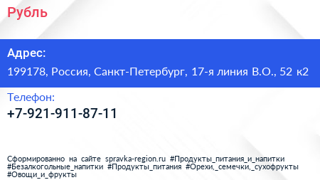 Рубль по адресу 199178, Россия, Санкт-Петербург, 17-я линия В.О., 52 к2 в дальнейшем Организация, размещена в следующих категориях: