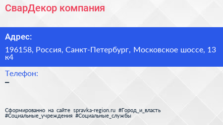 СварДекор, компания по адресу 196158, Россия, Санкт-Петербург, Московское шоссе, 13 к4 в дальнейшем Организация, размещена в следующих категориях:
