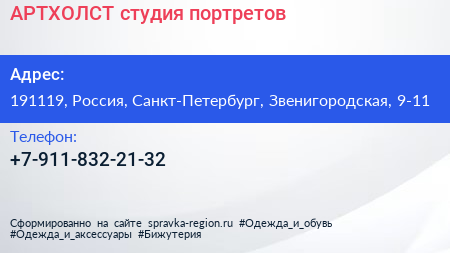 АРТХОЛСТ, студия портретов по адресу 191119, Россия, Санкт-Петербург, Звенигородская, 9-11 в дальнейшем Организация, размещена в следующих категориях: