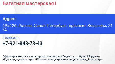 Багетная мастерская №I по адресу 195426, Россия, Санкт-Петербург, проспект Косыгина, 21 к1 в дальнейшем Организация, размещена в следующих категориях: