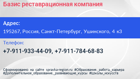 Базис, реставрационная компания по адресу 195267, Россия, Санкт-Петербург, Ушинского, 4 к3 в дальнейшем Организация, размещена в следующих категориях:
