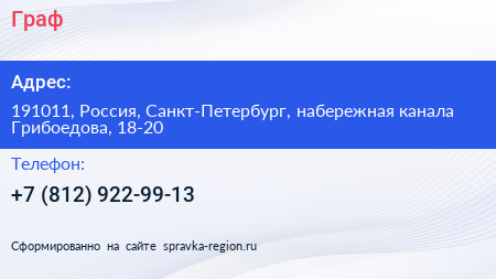 Граф по адресу 191011, Россия, Санкт-Петербург, набережная канала Грибоедова, 18-20 в дальнейшем Организация, размещена в следующих категориях: