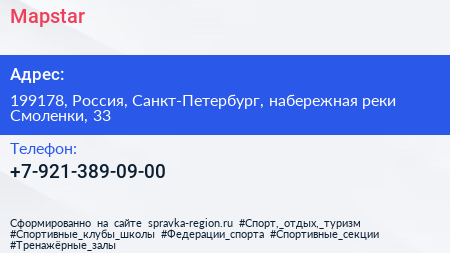 Mapstar по адресу 199178, Россия, Санкт-Петербург, набережная реки Смоленки, 33 в дальнейшем Организация, размещена в следующих категориях: