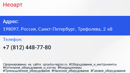 Неоарт по адресу 198097, Россия, Санкт-Петербург, Трефолева, 2 к8 в дальнейшем Организация, размещена в следующих категориях: