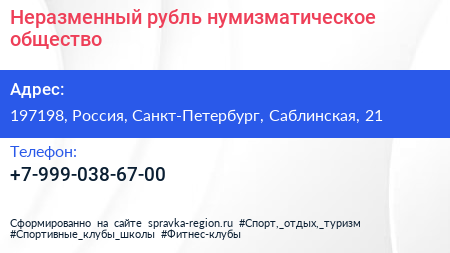 Неразменный рубль, нумизматическое общество по адресу 197198, Россия, Санкт-Петербург, Саблинская, 21 в дальнейшем Организация, размещена в следующих категориях: