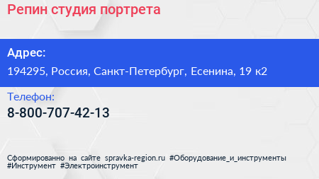 Репин, студия портрета по адресу 194295, Россия, Санкт-Петербург, Есенина, 19 к2 в дальнейшем Организация, размещена в следующих категориях: