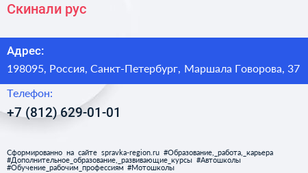 Скинали.рус по адресу 198095, Россия, Санкт-Петербург, Маршала Говорова, 37 в дальнейшем Организация, размещена в следующих категориях: