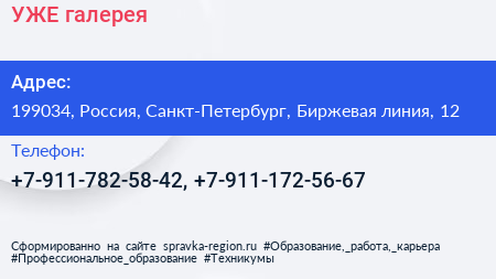 УЖЕ, галерея по адресу 199034, Россия, Санкт-Петербург, Биржевая линия, 12 в дальнейшем Организация, размещена в следующих категориях:
