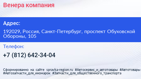 Венера, компания по адресу 192029, Россия, Санкт-Петербург, проспект Обуховской Обороны, 105 в дальнейшем Организация, размещена в следующих категориях: