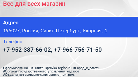 Все для всех, магазин по адресу 195027, Россия, Санкт-Петербург, Якорная, 1 в дальнейшем Организация, размещена в следующих категориях: