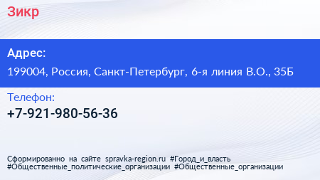 Зикр по адресу 199004, Россия, Санкт-Петербург, 6-я линия В.О., 35Б в дальнейшем Организация, размещена в следующих категориях: