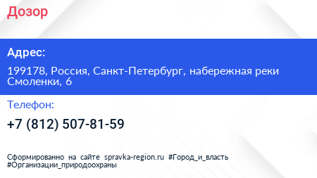 Дозор по адресу 199178, Россия, Санкт-Петербург, набережная реки Смоленки, 6 в дальнейшем Организация, размещена в следующих категориях: