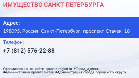 ИМУЩЕСТВО САНКТ-ПЕТЕРБУРГА по адресу 198095, Россия, Санкт-Петербург, проспект Стачек, 18 в дальнейшем Организация, размещена в следующих категориях: