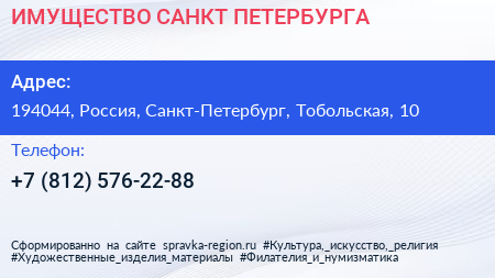 ИМУЩЕСТВО САНКТ-ПЕТЕРБУРГА по адресу 194044, Россия, Санкт-Петербург, Тобольская, 10 в дальнейшем Организация, размещена в следующих категориях: