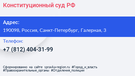 Конституционный суд РФ по адресу 190098, Россия, Санкт-Петербург, Галерная, 3 в дальнейшем Организация, размещена в следующих категориях: