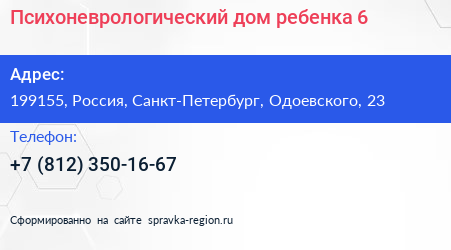 Психоневрологический дом ребенка №6 по адресу 199155, Россия, Санкт-Петербург, Одоевского, 23 в дальнейшем Организация, размещена в следующих категориях: