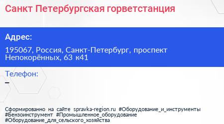 Санкт-Петербургская горветстанция по адресу 195067, Россия, Санкт-Петербург, проспект Непокорённых, 63 к41 в дальнейшем Организация, размещена в следующих категориях: