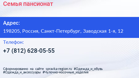 Семья, пансионат по адресу 198205, Россия, Санкт-Петербург, Заводская 1-я, 12 в дальнейшем Организация, размещена в следующих категориях: