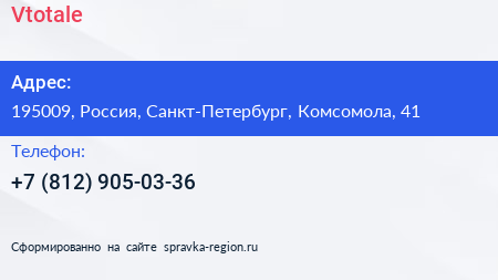 Vtotale по адресу 195009, Россия, Санкт-Петербург, Комсомола, 41 в дальнейшем Организация, размещена в следующих категориях: