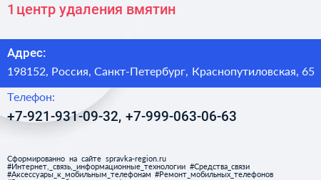 №1, центр удаления вмятин по адресу 198152, Россия, Санкт-Петербург, Краснопутиловская, 65 в дальнейшем Организация, размещена в следующих категориях: