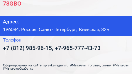 78GBO по адресу 196084, Россия, Санкт-Петербург, Киевская, 32Б в дальнейшем Организация, размещена в следующих категориях: