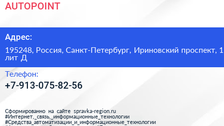 AUTOPOINT по адресу 195248, Россия, Санкт-Петербург, Ириновский проспект, 1 лит Д в дальнейшем Организация, размещена в следующих категориях: